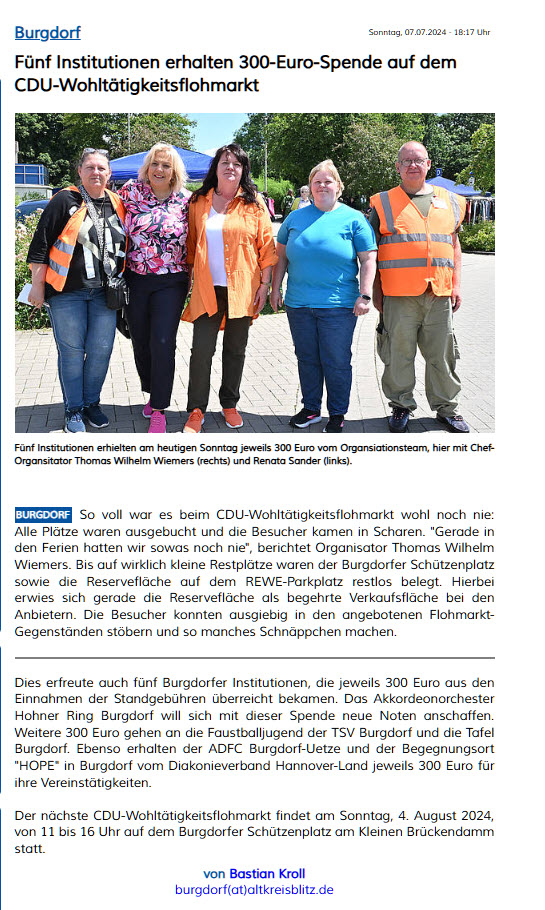 Bericht Haz vom 25.07.2024: Regelmäßige Hilfe für 700 Bedürftige